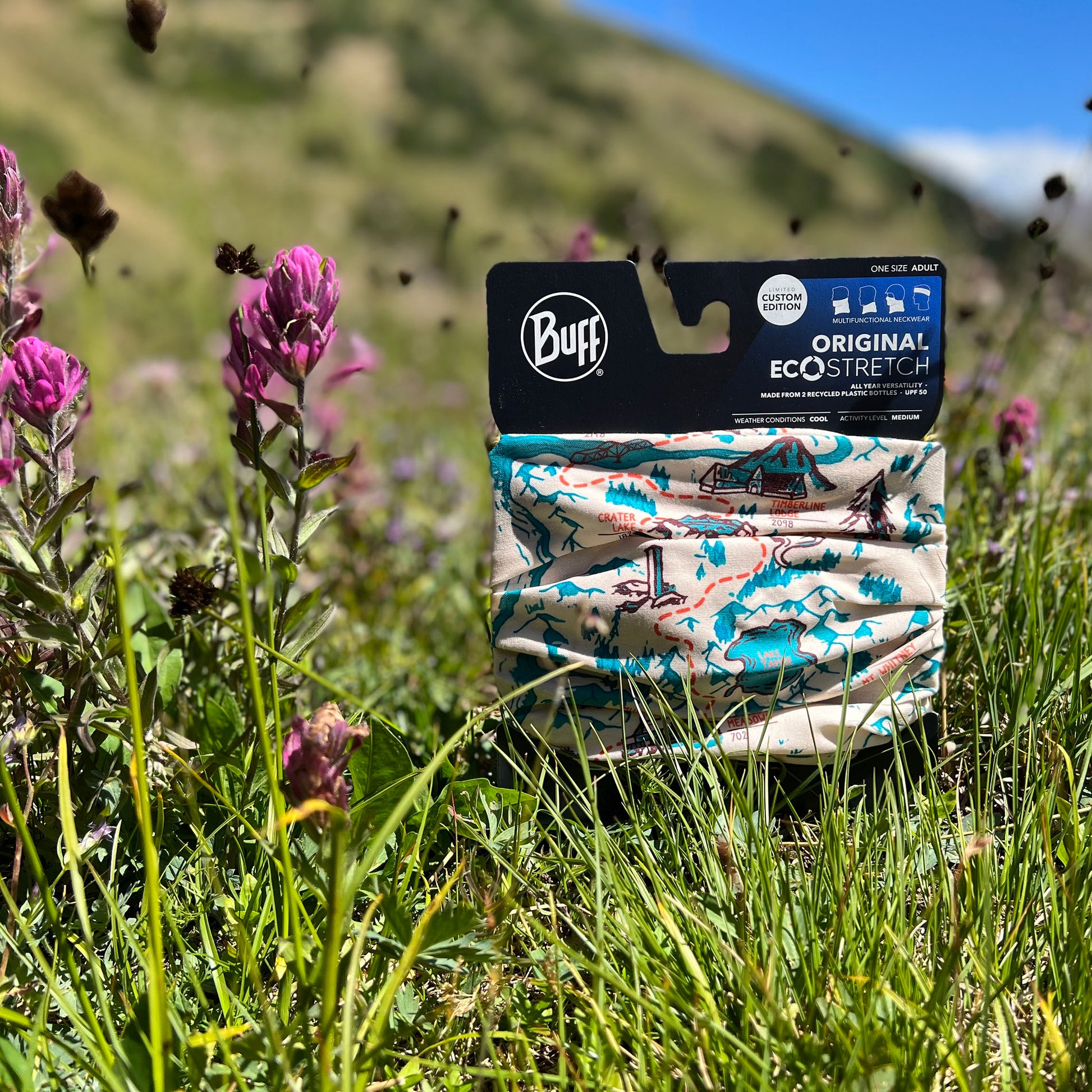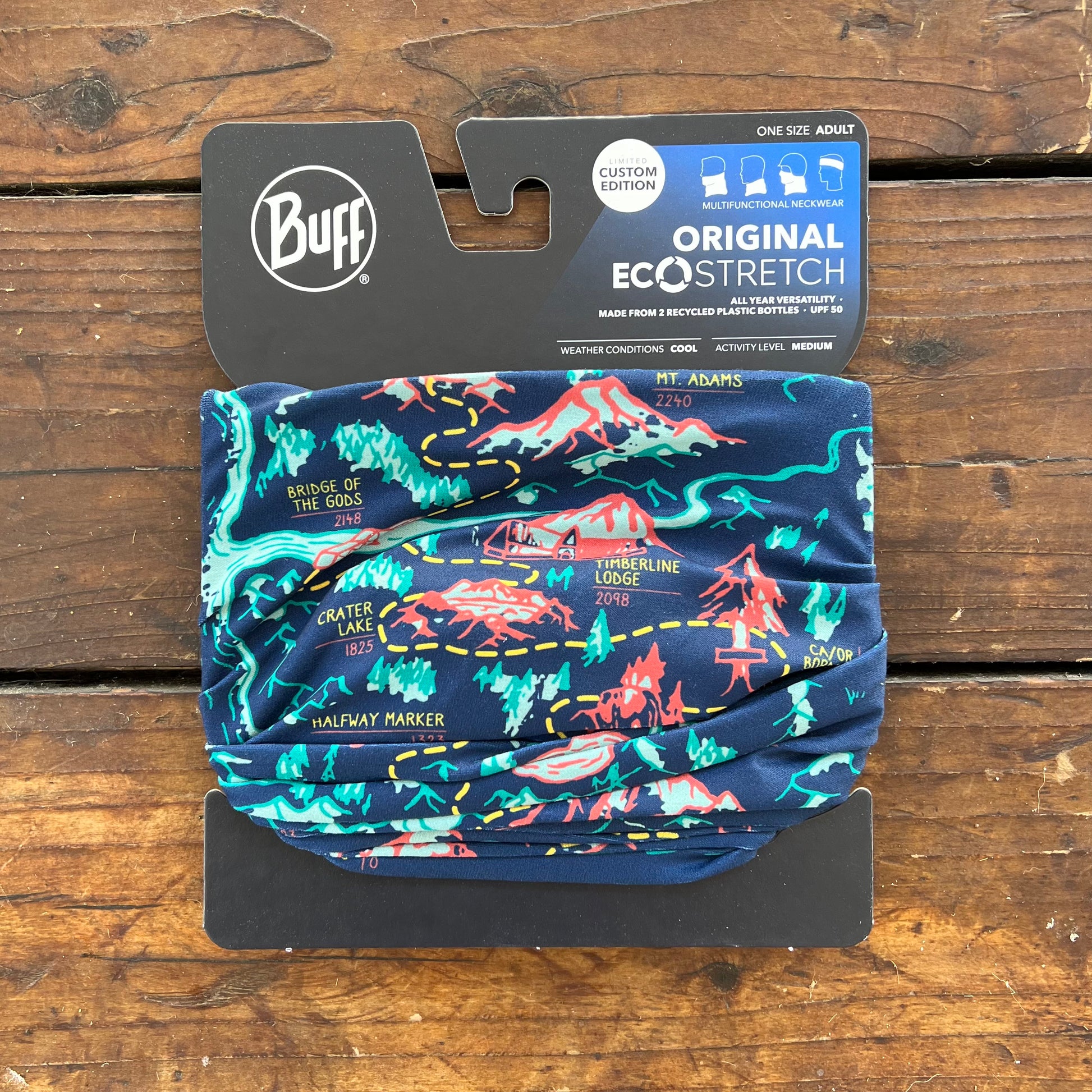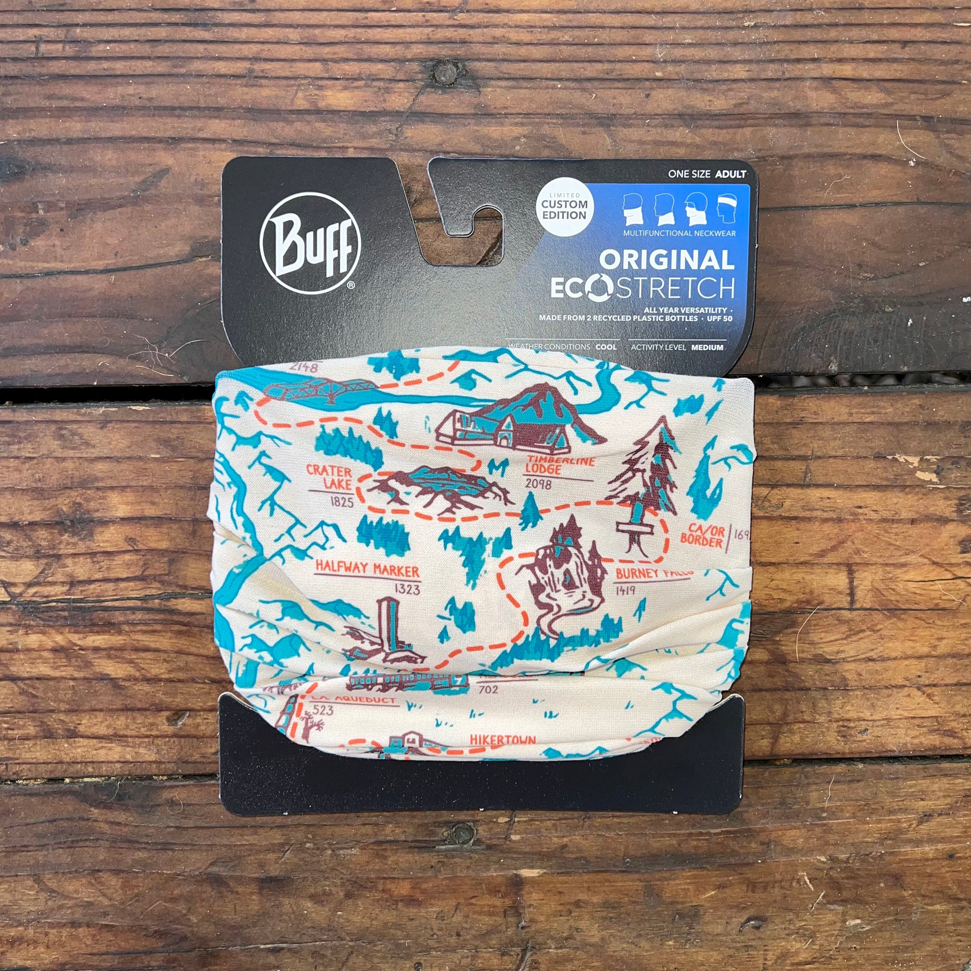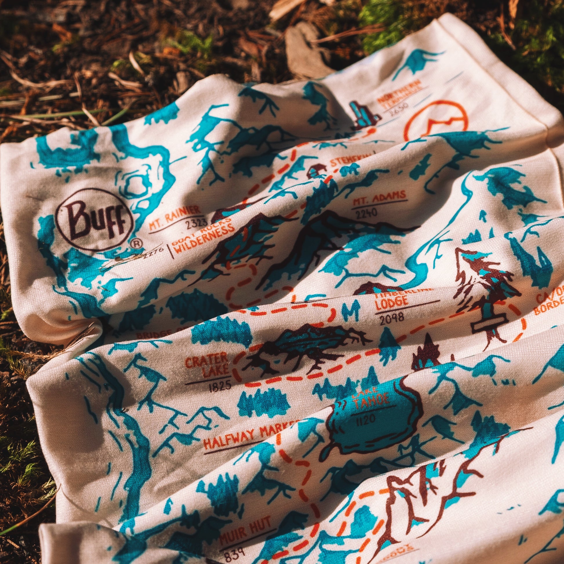 The Trek's PCT Map BUFF® Original Multifunctional Neckwear includes but a handful of our favorite stops along the PCT. This design is a fun twist on a PCT map, highlighting many standout spots along the iconic Mexico <> Canada footpath, including The Southern Terminus, Eagle Rock, Paradise Valley Cafe, San Jacinto, Cajon Pass McDonald's, Mt Baden-Powell, Hikertown, LA Aqueduct, Kennedy Meadows, Mt Whitney, Muir Hut, Lake Tahoe, Halfway Marker, Burney Falls, California / Oregon Border, Crater Lake, Timberline Lodge, Bridge of the Gods, Mt Adams, Goat Rocks Wilderness, Mt Rainier, Stehekin, and the Northern Terminus.